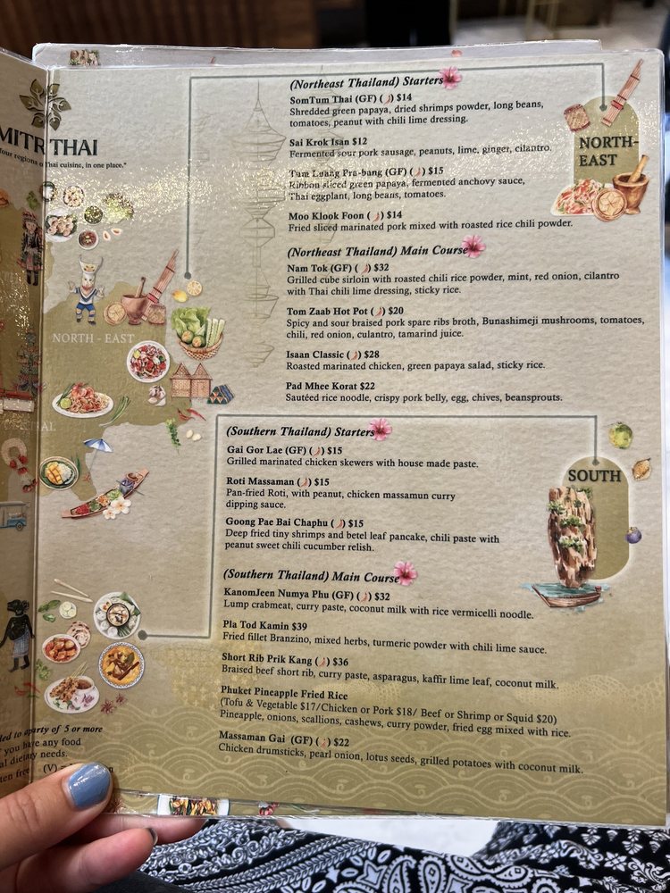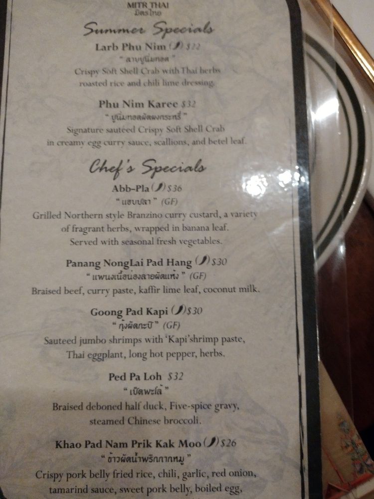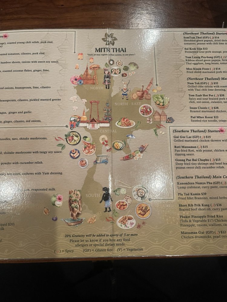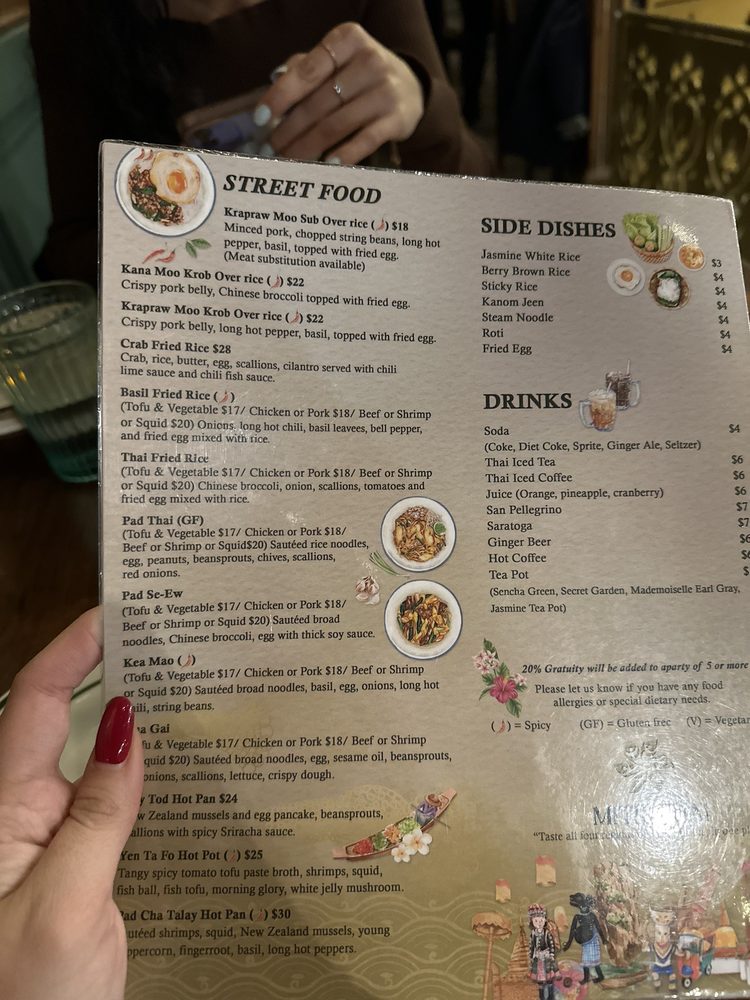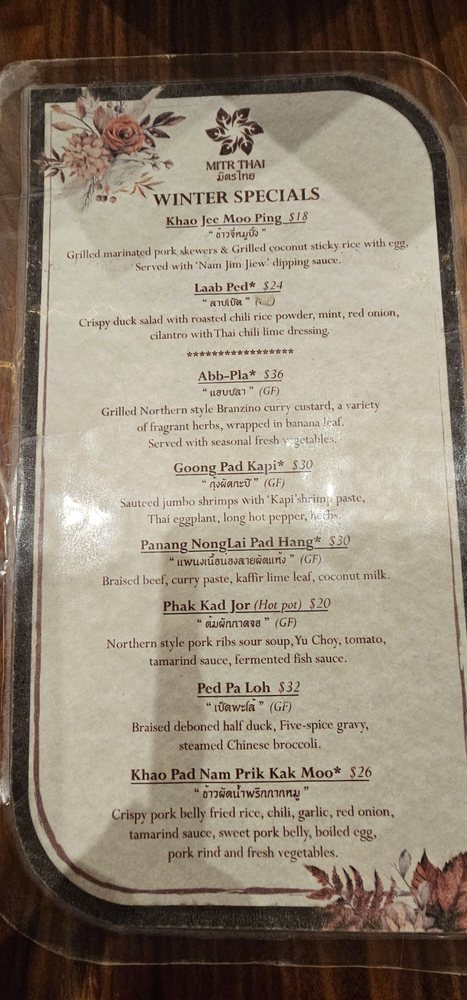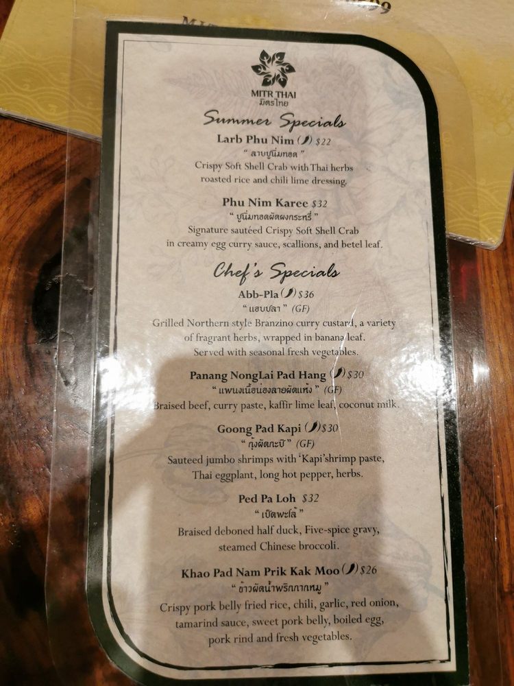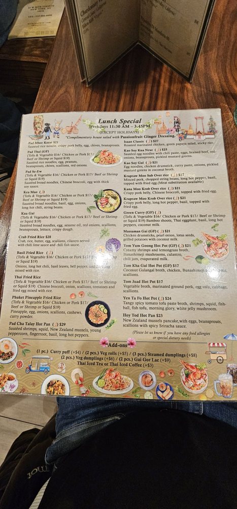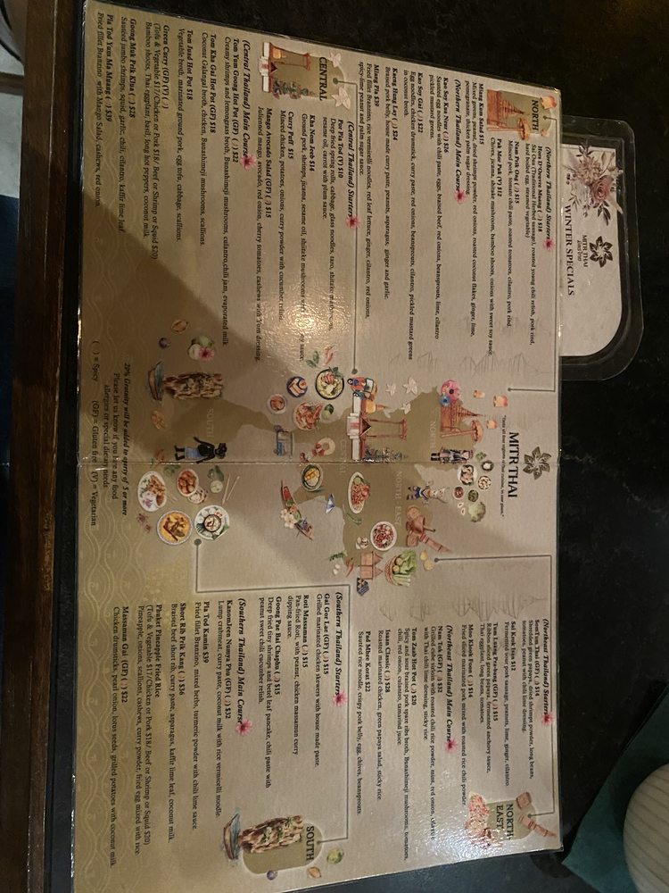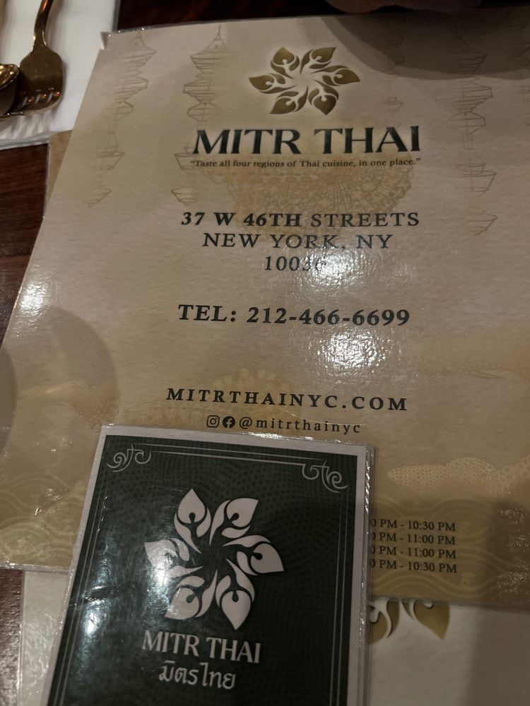 Introducing the menu at Mitr Thai, a Thai restaurant located in New York City, offers a unique dining experience with a range of amenities. With a diverse menu that includes vegan and limited vegetarian options, Mitr Thai caters to a variety of dietary preferences. QR code menus, free Wi-Fi, a full bar, and private dining options make it a versatile choice for different occasions. Customers rave about the exceptional service, creative cocktails, and delicious dishes like Phuket Pineapple Fried Rice, Mango Sticky Rice, and Kha Nom Jeeb dumplings. The restaurant's ambiance, friendly staff, and flavorful food make Mitr Thai a must-visit destination for authentic Thai cuisine.